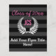Elegant personalized trendy style. Wide horizontal black on black Stripe background with pink lettering and white laurel wreath. Add any year, and monogrammed 3-letter initials to this personalized graduation favor.