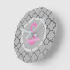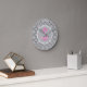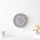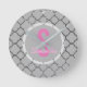Custom Girls Name Pink Silver Quatrefoil Pattern Round Clock