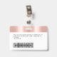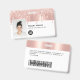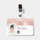 Easily personalize this Custom Glam Employee Name Badge with Photo, Scan Bar Code and business logo, with metal clip included. A trendy girly design left-aligned in cute rose gold faux foil and glitter drips fully customizable in front and back sizes, sans-serif basic and modern fonts and a professional and clear look. Avaiable with or without lanyard, metal clip or with retractable. No minimum order.