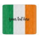 Custom glass cutting board with Irish flag design. Chopping board for food like vegetables and meat. Unique kitchen gift idea for friends and family. Script typography template.