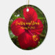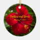 Glass ornament with a personalized message and a beautiful red hibiscus.