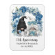 Custom 15th wedding anniversary keepsake magnet with a design featuring a bride and groom gnomes and a blue floral arch illustration. Edit the template with any year and message.
