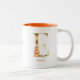 Custom Gold Alphabet E Monogram | Floral Pumpkin Two-Tone Coffee Mug