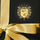 Custom Gold Crust Shield - add your name and age. Perfect for a birthday party -customize a personal and elegant crust shield with the name and age of the guest-of-honor. A stylish emblem on sticker sheets of 20 available in different sizes and shapes. This sticker are versatile and can be used on invitations, party supplies and gift favors and wrapping. The gold on black gives a luxurious feel. An eye catching element. Will give a personal and elegant touch the birthday girl or boy will appreciate and will elevate any mailing and wrapping.