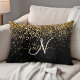 Custom Gold Glitter Black Sparkle Monogram Accent Pillow