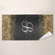 Custom Gold Glitter Black Sparkle Monogram Bath Towel Set