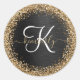 Custom Gold Glitter Black Sparkle Monogram Classic Round Sticker