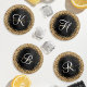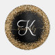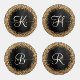 Custom Gold Glitter Black Sparkle Monogram Coaster Set
