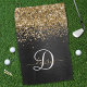 Custom Gold Glitter Black Sparkle Monogram Golf Towel
