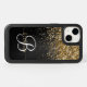 Easily personalize this trendy elegant phone case design featuring pretty gold sparkling glitter on a black brushed metallic background.