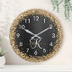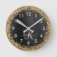 Custom Gold Glitter Black Sparkle Monogram Round Clock