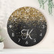 Custom Gold Glitter Black Sparkle Monogram Round Clock