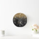 Easily personalize this trendy elegant round clock design featuring pretty gold sparkling glitter on a black brushed metallic background.