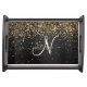 Custom Gold Glitter Black Sparkle Monogram Serving Tray