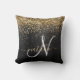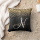 Custom Gold Glitter Black Sparkle Monogram Throw Pillow