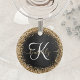 Custom Gold Glitter Black Sparkle Monogram Wine Charm