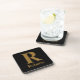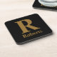 Custom Gold Initial/First/Family Name On Black Beverage Coaster