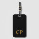 This tag features a black design with gold initials, adding style to your travel gear. Customize it with your initials or those of a loved one, making it a meaningful travel accessory or a thoughtful gift.