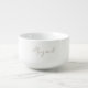 Gold Name script typography soup bowl.