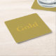 This is a square coaster with the word Gold in gold text centered on a gold background. The coaster is a paper pulp coaster. There are six coasters in the set. You can change the text with the Personalize button. The background color is Mystic Gold.