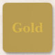 This is a square coaster with the word Gold in gold text centered on a gold background. This is a square hard plastic coaster. The coaster has a cork backing. There are six coasters in the set. You can change the text with the Personalize button. The background color is Antique Gold.