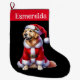 Perfect! Exactly what I ordered! I uploaded a picture of my blue chow, and the screen print was incredible. the back side of the stocking was the red and black checkered print. my puppy's name was also printed on the cuff of the stocking. PERFECT! Highly recommend this product! My puppy's name was screen printed onto the cuff of the stocking, the font was perfect!