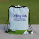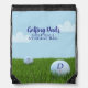 If you're looking for a golf themed gift that is both personalized and practical, look no further than this handy drawstring bag with golf balls on the green grass.