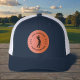 Elevate your golf club’s branding with this customizable leather-patch trucker hat, designed for players, coaches, and course staff. The rich leather badge features a golfer silhouette surrounded by stars, giving your hat a polished, athletic look. Add your club name and tagline, location or other text to create a personalized accessory perfect for tournaments, team uniforms, pro shop merchandise, or member gifts. Crafted with a structured front panel and breathable mesh backing, this hat blends comfort with durability—ideal for long days on the course. Whether you're outfitting a golf league, creating country-club merch, or preparing event giveaways, this personalized cap adds a professional touch to every swing.