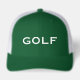 Custom golf hats. Sporty caps with open mesh back . Available in different colors. Green and white example with classy typography.. Great for player, fan and coach.