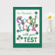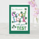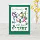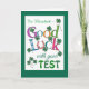 A Good Luck with your Test greeting card to personalise, with brightly coloured lettering, four-leaf clovers and a horseshoe for luck! A text-based,