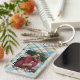 Unique and trendy graduate photo keychain, framed with a fun and stylish colorful pink, yellow, white,light and dark blue colored tartan plaid stripes pattern background. With room to customize or personalize with a photo, the name of the graduate, and class graduation year.