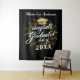 Graduation Party Backdrop. Faux gold foil look with mortarboard cap and starburst in elegant gold and black. Fully customizable -- easily add your own text, change the background color, text size and style. Classy but festive background setting for your graduate's celebration.
