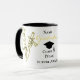Celebrate the special moment of graduation with this beautifully designed customizable mug. Featuring a classy cartoon illustration of a female graduate, this mug is perfect for adding a personal touch with her name, graduation year, and an inspiring quote:Future Awaits