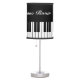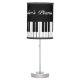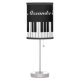 Custom grand piano key table lamp for pianist or musician. Cute black and white table lamp for kids piano room, study, school, bedroom, desk, office, shop, store or baby nursery. Music keyboard design with custom background color. Fun children's room decoration. Custom home decor for piano player, teacher, artist, performer etc. Classical music theme. Add your own personalized name, monogram letters or funny quote. Light with lampshade.