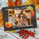Unique, classy, trendy, pretty and decorative Thanksgiving holiday card. Cute Grateful Blessed Giving Thanks text and room to customize or personalize with a photo and names (or family name) of your choice. With cute classic orange pumpkins on a weathered looking gray rustic farmhouse inspired barnwood planks pattern background design. And a customizable season greeting poem on the backside of the card.