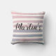 Custom Gray and Pink Striped Pattern Throw Pillow