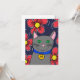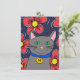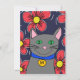 custom gray cat with flowers personalize initial card