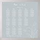 A wedding reception seating chart is an elegant way to direct your guests to their tables instead of using place cards. You can also keep your seating chart as a momento of your wedding and the people who celebrated with you. This wedding seating chart features a subtle white line art flower on a gray background. It is available in several different sizes with an optional frame. We also offer a rectangular version of this wedding reception seating chart that fits many standard frame sizes.