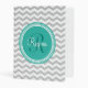 Custom Gray Teal Chevron Monogram Personalized Mini Binder