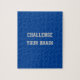 Custom Gray Text Challenge Your Brain Deep Blue Jigsaw Puzzle