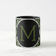 Beautiful contemporary black and forest green diagonal checkered plaid pattern. Stylish rustic style mug with room to customize or personalize with your monogram.
