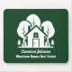 This forest green real estate company mousepad is perfectly customized for a realtor who specialized in houses near the wilderness or woodlands. The white silhouette of trees behind a log cabin home and personalized with your agent and realty business name for marketing in the backwoods.