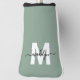 Custom Create Your Own Personalized Initial Name Monogram Golf Head Cover. Add a stylish and personal touch to your golf gear with this chic and elegant design. This version features a soft sage green background with a bold white initial and a flowing black script calligraphy name, creating a refined yet eye-catching look.