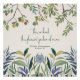 Delicate watercolor foliage in soft greens, plums, and dusky blues frames the text, evoking a peaceful orchard or cottage garden. A circular monogram at the base allows for personalization—perfect for marking a special home, honoring a loved one, or giving as a thoughtful housewarming, retirement, or wedding gift.