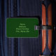 Luggage tags help you identify your luggage, backpacks, gym bags, golf bags and more from other bags on the luggage carousel, train or bus, and prevent loss. Easily and quickly pick your bag out of the herd with this luggage tag that has a unique design on the front and the back for your name, address, city, state and zip code information. Change the text in the fields provided. You can change font style, size, and color.