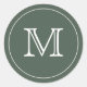 Custom GREEN SAGE Black Monogram Letter Classic Round Sticker