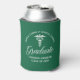 This custom green medical school graduation party can cooler features classy white typography under a medical caduceus and your college name for the class of 2024. Customize with your graduating year under the elegant calligraphy for great personalized university graduate favor for a nurse or doctor.