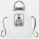 A personalized all-over print apron featuring a custom grill BBQ quote or saying for dad.