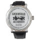 Personalized Wedding Gift with Name and Date.Give your groomsman a timeless gift with this custom wristwatch featuring bold typography, a bow tie graphic, and personalized name and wedding date. With its classic black leather band and clean silver casing, this watch is a stylish and sentimental keepsake perfect for thanking your wedding crew. Whether it’s worn on the big day or kept as a treasured memento, this personalized groomsman watch is a thoughtful way to show appreciation for his support and friendship.