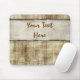 Unique grunge style custom mousepad in earthy brown tones ready for you to add your own text to the aged and frayed big fabric banner across the front. Great gift for kids, teens, and men and women of any age.